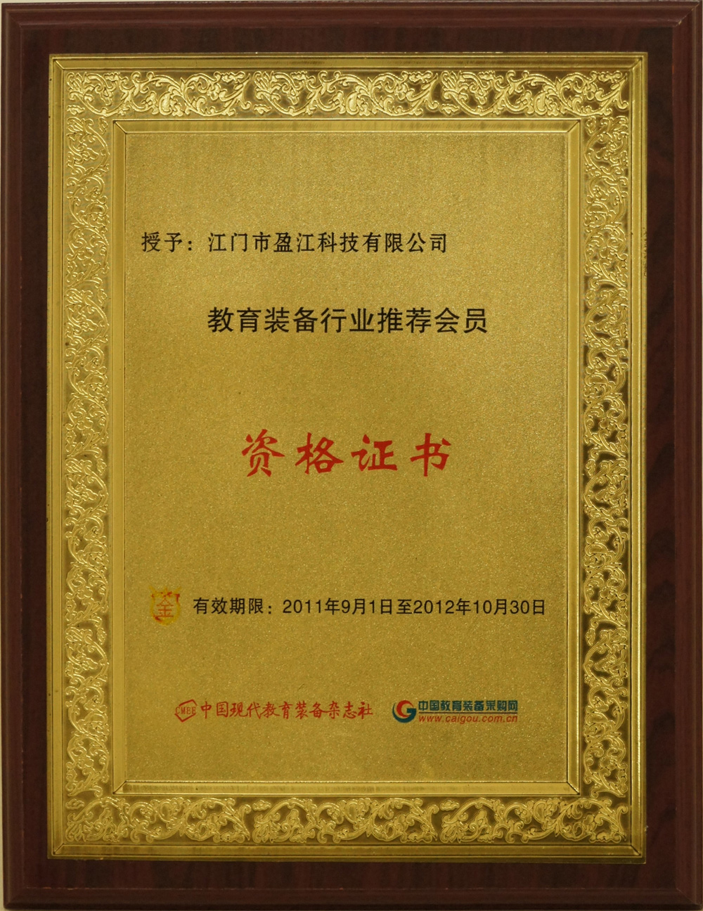 教育裝備行業(yè)推薦會員資格證書