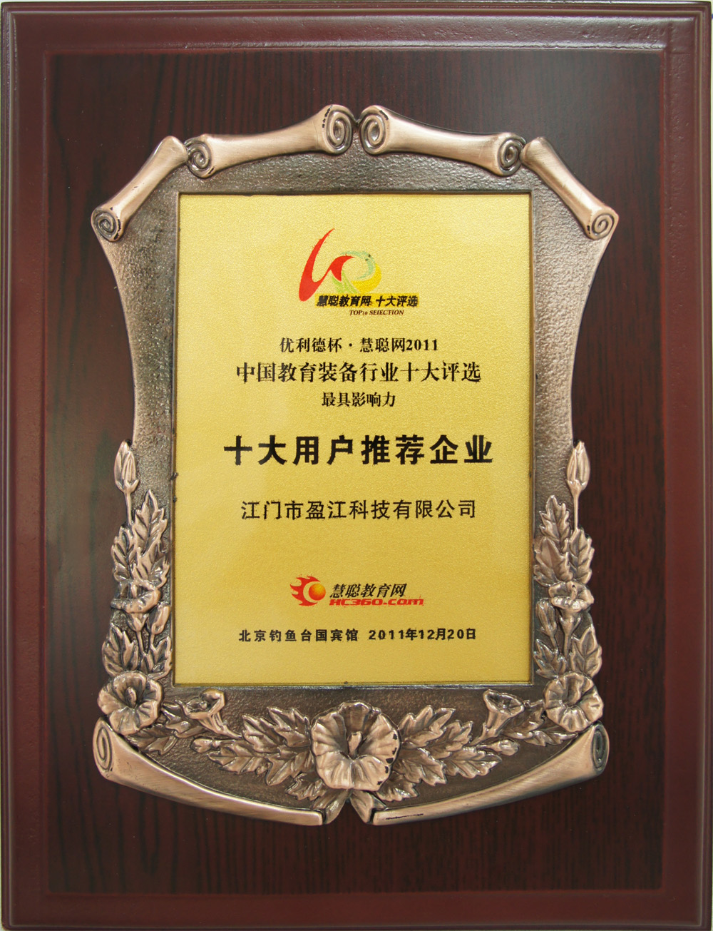 十大用戶推薦企業(yè)獎杯