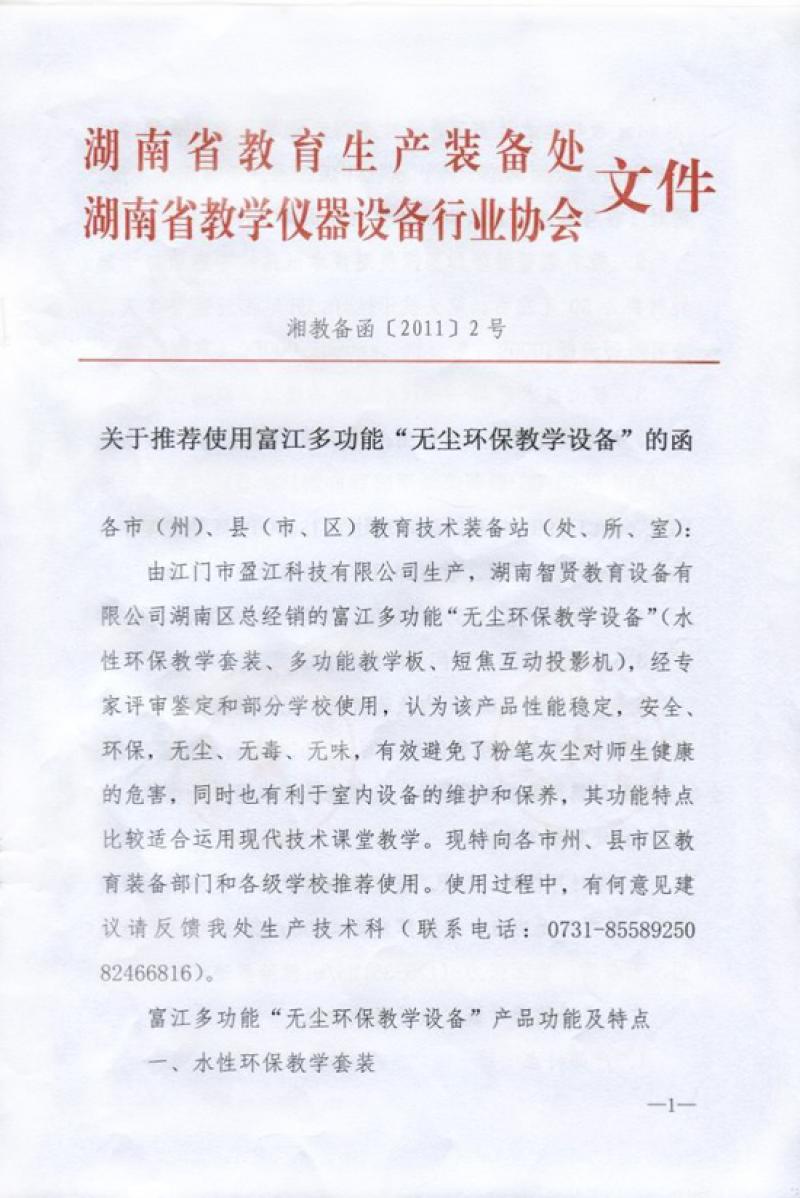 11月24日,2011年廣東省企業(yè)創(chuàng)新成果發(fā)布暨表彰大會在廣州舉行。省委常委、常務(wù)副省長肖志恒出席。本次大會由廣東省經(jīng)濟(jì)和信息化委員會、廣東省人民政府國有資產(chǎn)監(jiān)督管理委員會、廣東省人力資源和社會保障廳、廣東省總工會和廣東省企業(yè)聯(lián)合會共同主辦,用以表彰各個勇于探索創(chuàng)新、獲得卓越成果的突出企業(yè)。 江門市盈江科技有限公司榮獲2011廣東省企業(yè)創(chuàng)新紀(jì)錄獎牌。公司研發(fā)的富江牌無塵環(huán)保教學(xué)設(shè)備(德康多功能教學(xué)板、水性環(huán)保板書筆、