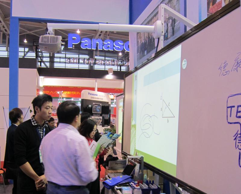 第十二屆廣州教育裝備展覽會于2013年3月29-31日在廣州白云國際會議中心順利開展。展會期間人氣很旺,各教育人士表現(xiàn)卓越。為了全面提升教育節(jié)奏,不斷地發(fā)掘新資源,新技術(shù)。此次展會我司帶來了德康多功能教學(xué)板(手觸型),是技術(shù)上又一次的突破。 在這次展會上我司的手觸型教學(xué)板成為了一大亮點(diǎn),4.1X1.45m的超大板面展現(xiàn)130英寸的操作畫面,可用任意的筆、教鞭或徒手進(jìn)行操作,操作響應(yīng)速度快,互動靈活,不延遲;面板采用優(yōu)質(zhì)鍍鋅鋼板為基