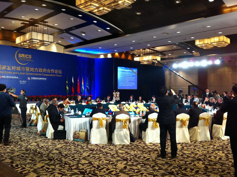 2011年12月1日至3日,首屆金磚國家友好城市暨地方政府合作論壇在本屆主席國中國海南三亞召開,來自中國、巴西、俄羅斯、印度及南非等五國的友好城市及地方政府官員、協(xié)會領(lǐng)導(dǎo)人和企業(yè)代表等300余人出席了會議。此次論壇主題為“展望未來、共享繁榮、發(fā)展友城、推動合作”,出席代表圍繞糧食安全、金融危機(jī)、城市發(fā)展與低碳環(huán)保、人類健康、能源戰(zhàn)略、文化交融等內(nèi)容展開深入探討。 首屆金城友合論壇現(xiàn)場 一直在中國的城市低碳環(huán)保和人類