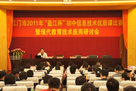 由我司贊助協(xié)辦的2011年“盈江杯”信息技術(shù)優(yōu)質(zhì)課比賽暨現(xiàn)代教育技術(shù)應(yīng)用研討會在江門第一中學(xué)景賢學(xué)校圓滿落下帷幕。此次大賽,來自臺山市、開平市、恩平市、鶴山市、江門市等地級的優(yōu)秀教師參與角逐。比賽以借班借電腦室上課的形式進(jìn)行,參賽課題包括文檔的編輯、互聯(lián)網(wǎng)的使用等操作。比賽的目的是為了進(jìn)一步推動初中信息科技學(xué)科課堂教學(xué)改革,加強(qiáng)對新課表、新教材的研究。 會議現(xiàn)場