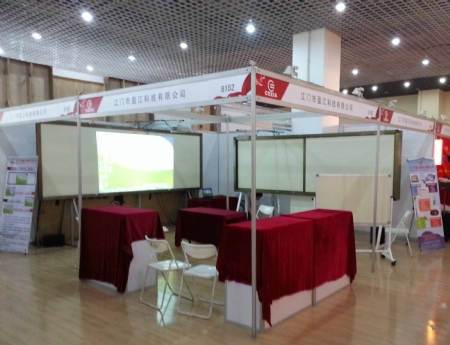 由中國高等教育學(xué)會主辦的2011年秋季全國高教儀器設(shè)備展示會于10月29日在江蘇省南京市國際博覽中心成功舉辦。為期三天的展會,吸引了眾多教育儀器設(shè)備領(lǐng)域的生產(chǎn)廠家與銷售單位參加,展示了各種高端技術(shù)與產(chǎn)品。我們盈江科技有限公司也參與了該盛會。作為一家教學(xué)設(shè)備的科技創(chuàng)新型企業(yè),我們公司除了一如既往的在展會上宣揚(yáng)綠色環(huán)保的理念,本次展會更第一次展示了我司最新推出的德康多功能加寬豪華型教學(xué)板。富江牌德康多功能教學(xué)板是一塊集黑板、投影幕布