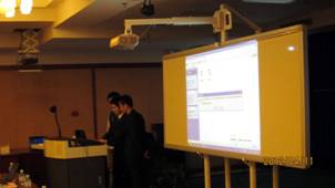 我司有幸在此次研討會上展示德康系列產(chǎn)品,其中包括德康多功能教學(xué)板(豪華型)和德康互動短焦投影機。通過現(xiàn)場清晰的投影展示,與會人員無論從任何一個角度,都能在此絕佳視覺效果下清楚觀看講解員在教學(xué)板上的講解,并能通過互動功能來進行深入的交流與討論。