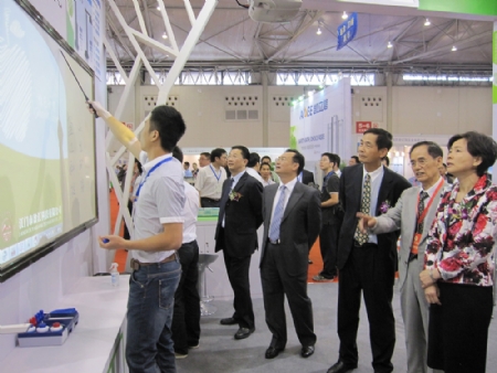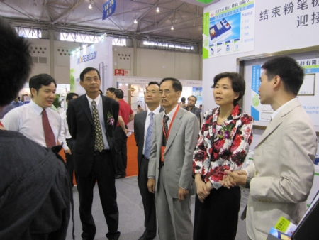 我司有幸得到江門市市長龐國梅領(lǐng)導(dǎo)蒞臨我司展位參觀,龐國梅市長仔細(xì)了解了該公司的多功能教學(xué)板和水性環(huán)保教學(xué)筆并親自試用,稱贊產(chǎn)品科技含量高!斑@個(gè)產(chǎn)品可以解決用粉筆書寫造成粉塵多的情況,改善教學(xué)環(huán)境!辈(dāng)場囑咐蓬江區(qū)政府等要大力支持企業(yè)產(chǎn)品推廣。我司產(chǎn)品受到了高度贊揚(yáng)與肯定,無疑為我司注入了有力的強(qiáng)心劑。能為教育界出一份力而感到驕傲與榮幸。