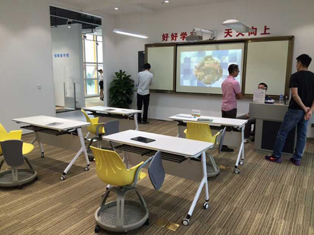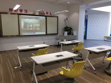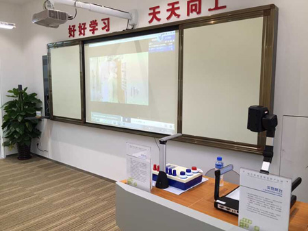 我司于展示中心內(nèi),建成了一整套無(wú)塵環(huán)保的多媒體教室,科技化程度極高,吸引眾多參觀人士的駐足觀看和咨詢。該多媒體教室稱為未來(lái)教室展區(qū),展區(qū)內(nèi)設(shè)有壁掛式視頻展臺(tái)、實(shí)物展示臺(tái)、高拍儀等高科技教學(xué)設(shè)備,安裝這些設(shè)備之后,教師們就能夠?qū)⒄n件輕松展示到電子屏幕上進(jìn)行講解,另外一些教學(xué)實(shí)物也能夠通過(guò)展示臺(tái)進(jìn)行詳細(xì)展示,讓學(xué)生們能夠更加直觀地學(xué)到知識(shí)。
